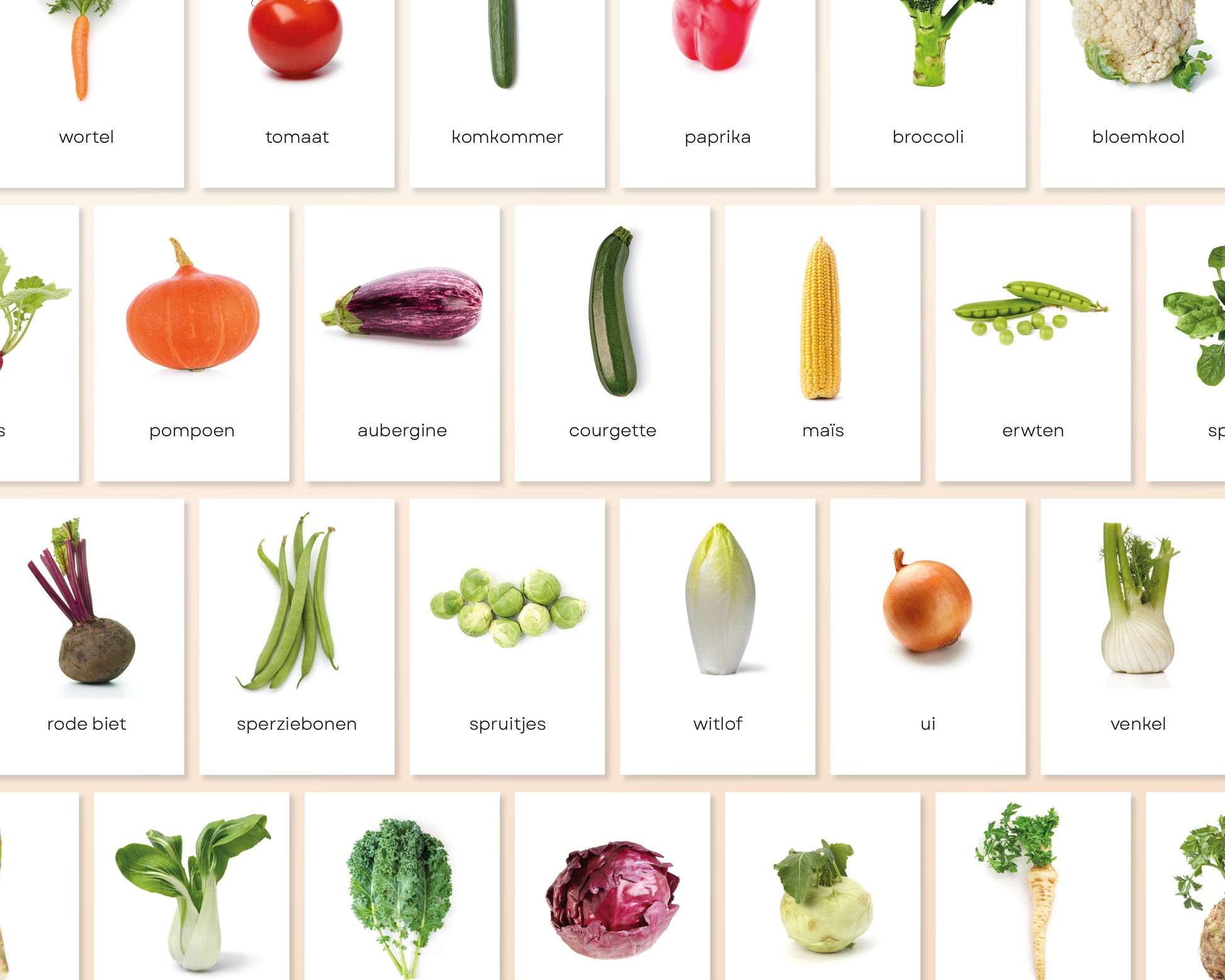 Met deze set van flashcards krijgen kinderen op een speelse manier een solide basis in groenten herkenning en woordenschat, allemaal op een manier die hun ontwikkeling ondersteunt.