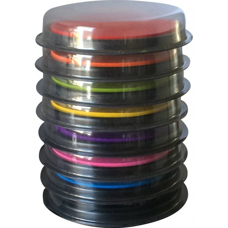 Deze doos bevat grote ronde inktpads in verschillende kleuren, speciaal ontworpen voor creatieve hobby's met kinderen. Dankzij het extra grote formaat zijn de pads ideaal voor kleine handjes en schuimstempels. Ze nodigen uit tot ontdekken, combineren en vrij creëren op papier, karton of zelfs textiel.