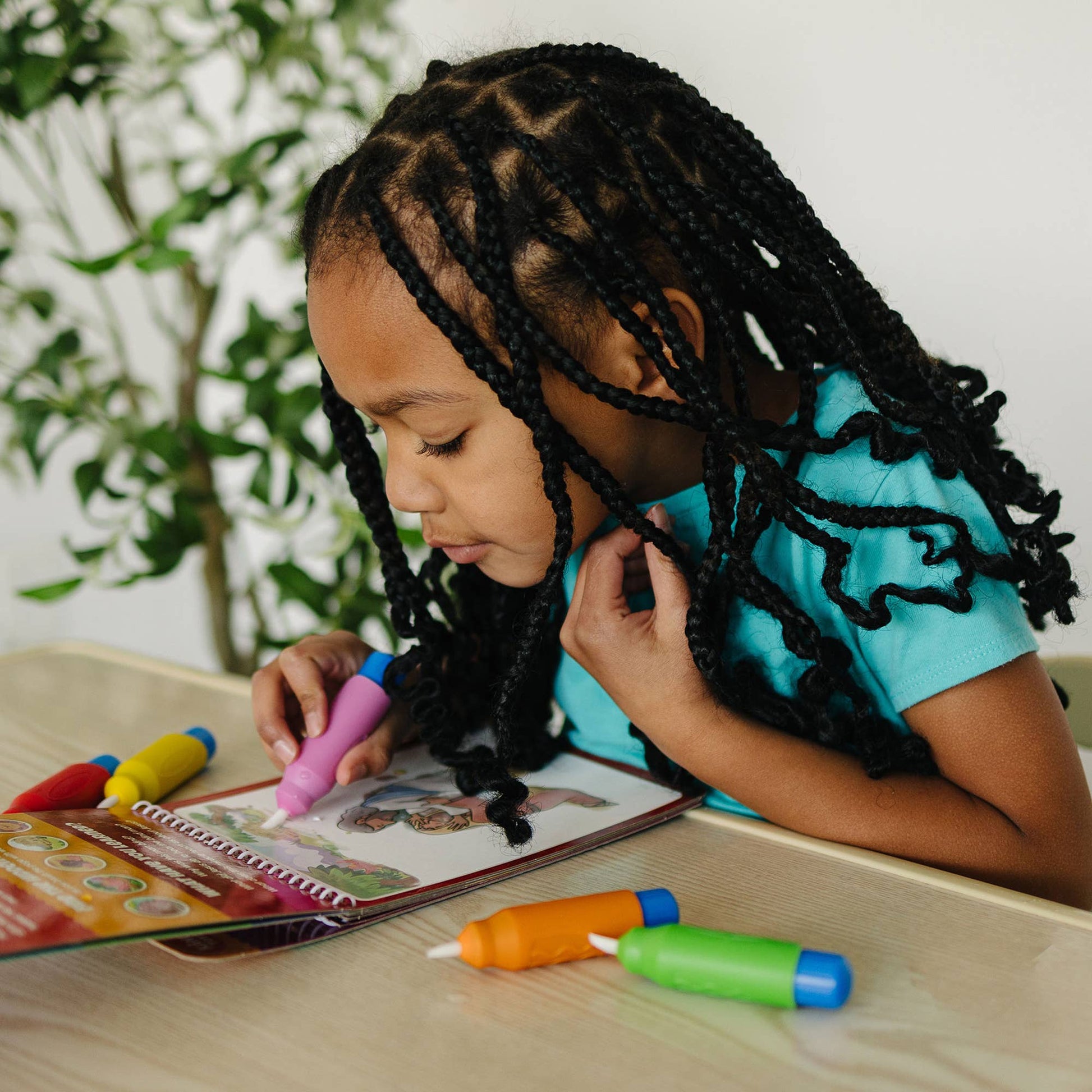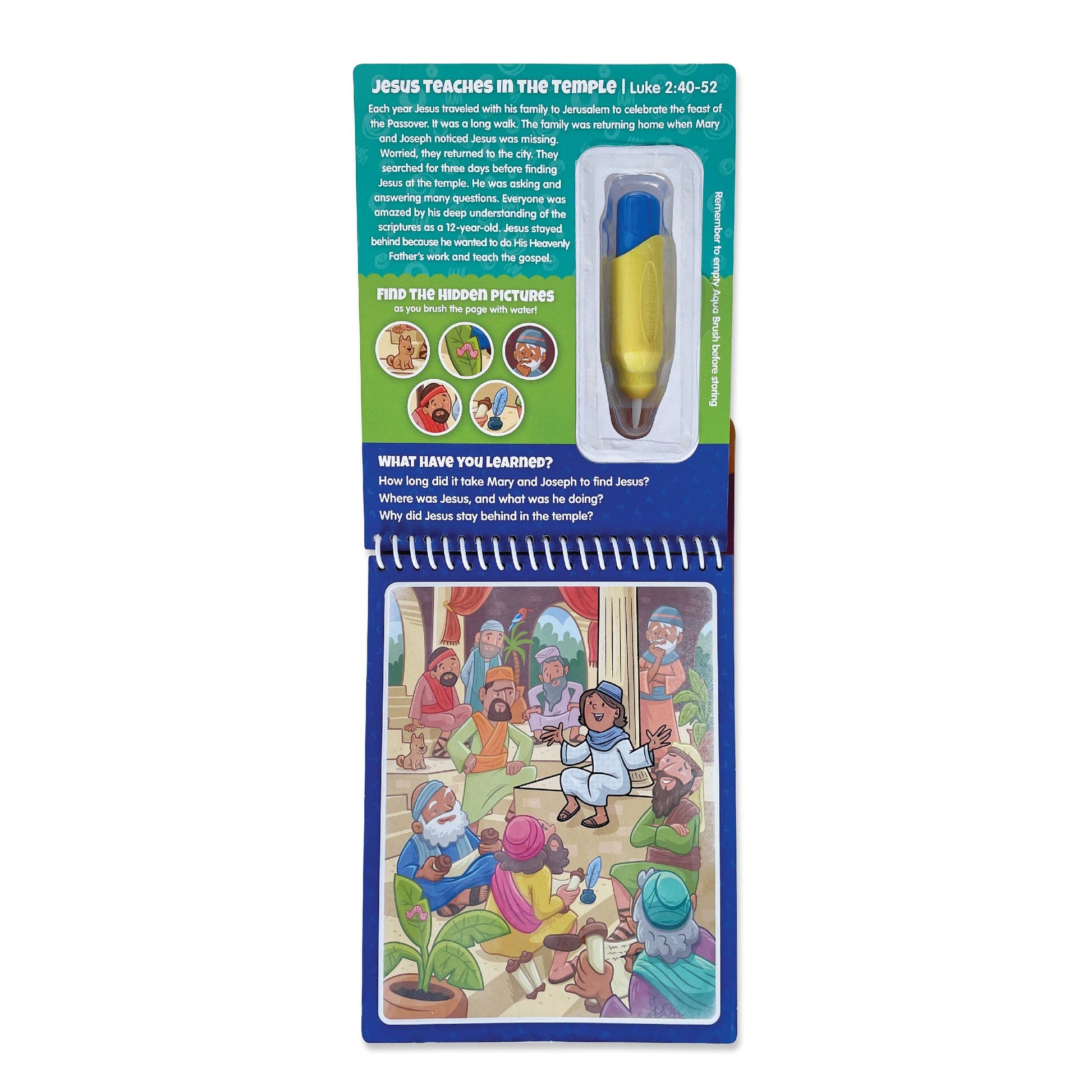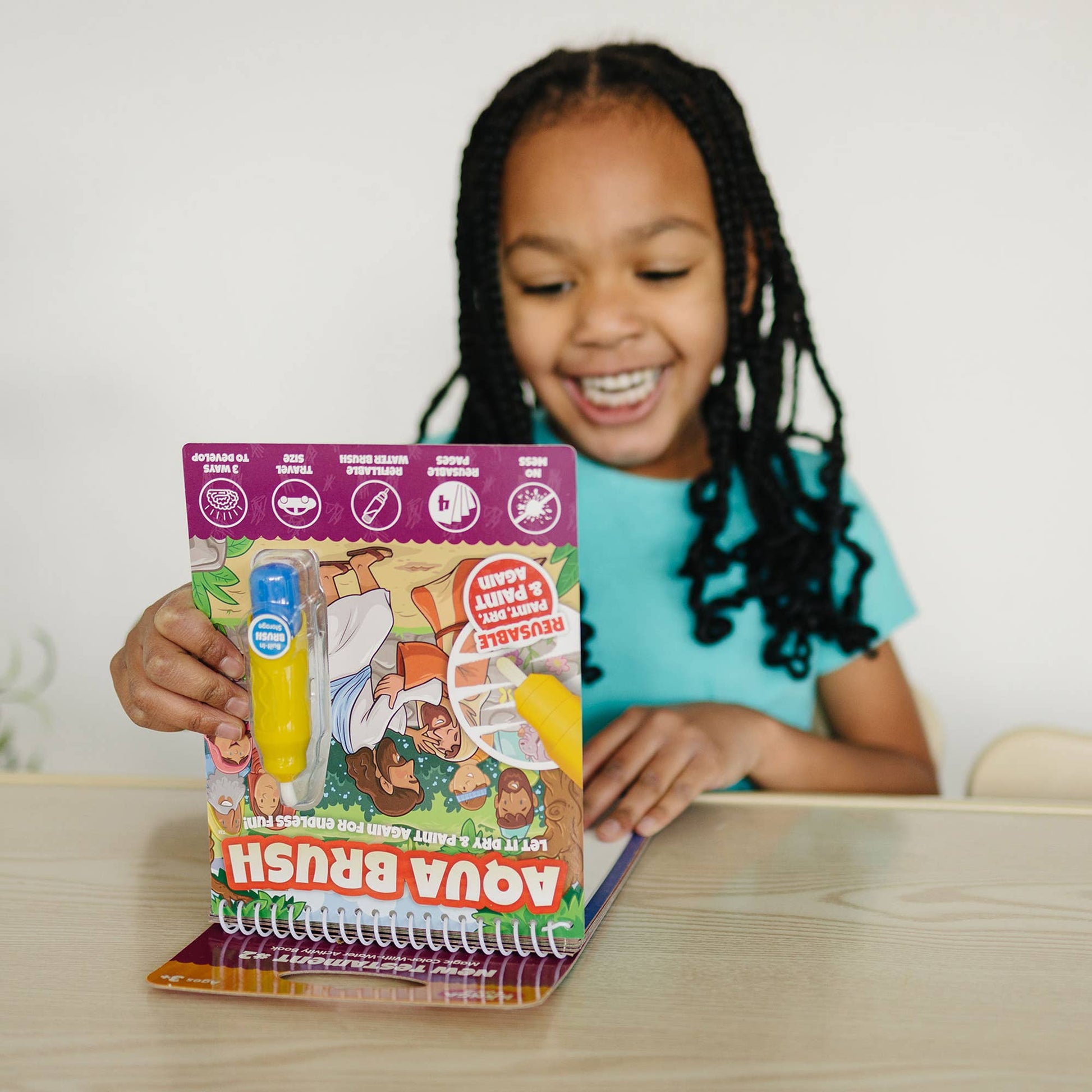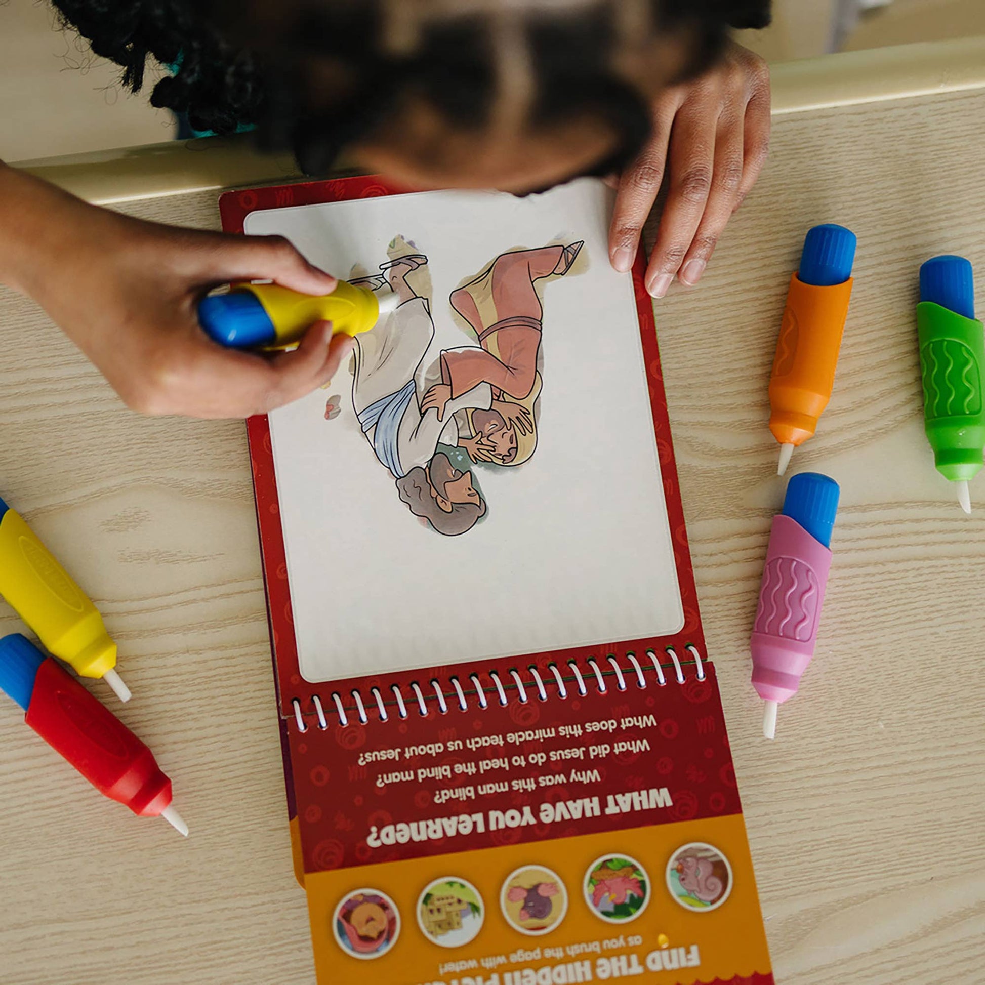 Met de Aqua Brush en een beetje water schilderen kinderen telkens opnieuw de scènes, terwijl ze leren over zorg, nederigheid en geloof. Geen rommel, geen stiften of verf – alleen water.